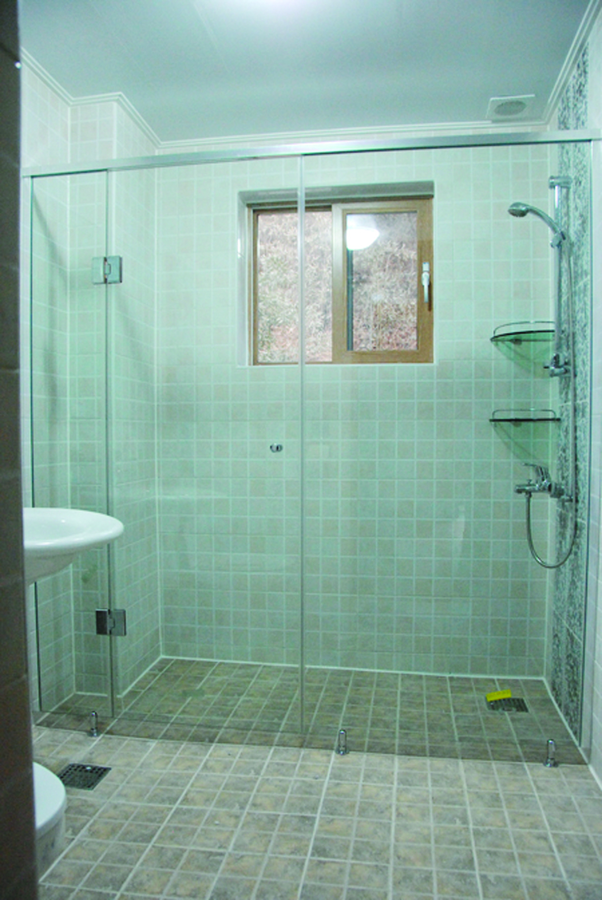 여닫이, 투명, 골드 프레임 , 타올바 손잡이 시공사례입니다.